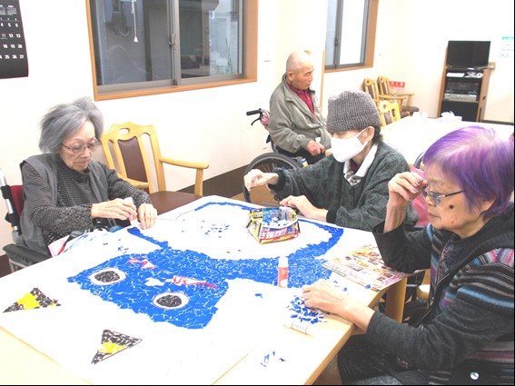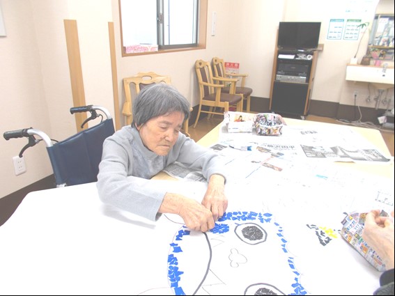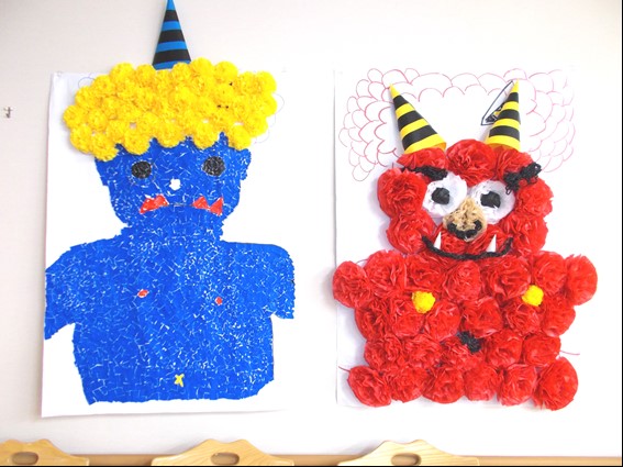 節分のイベントのためにご利用者様と鬼のはり絵を制作しました。