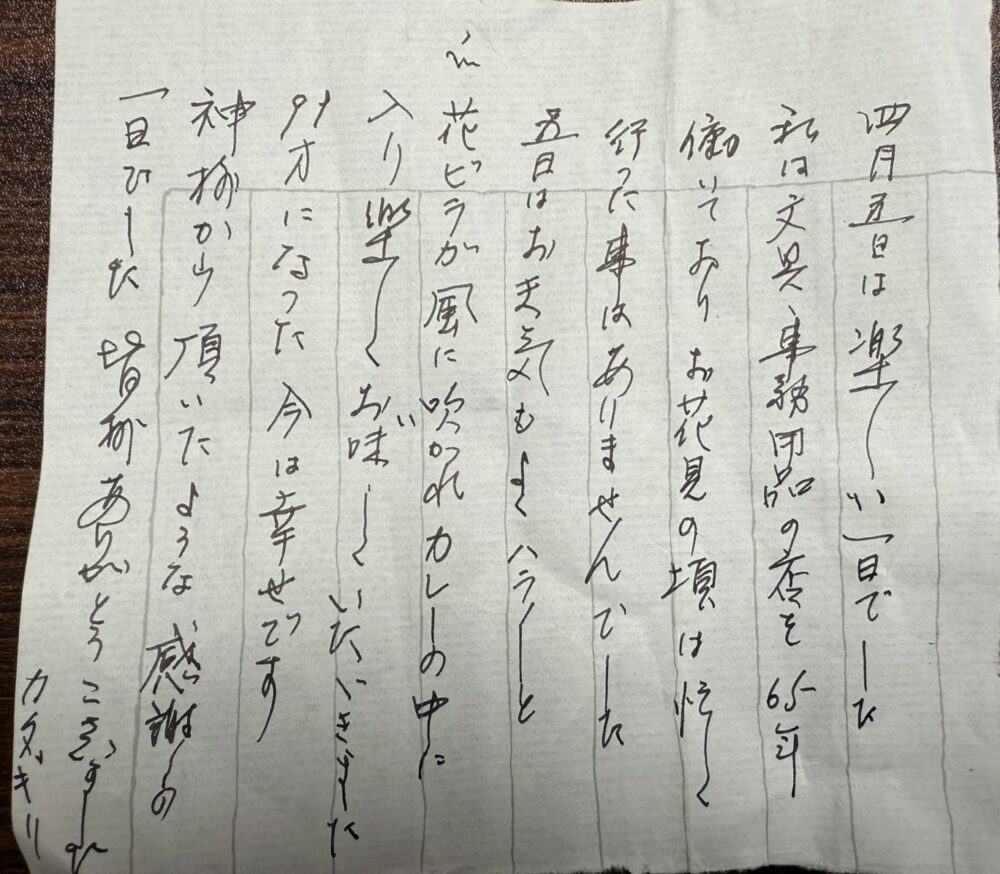 『母と一緒にお花見をしたのは今までなかったことで幸せなひと時を過ごさせていただきました。』