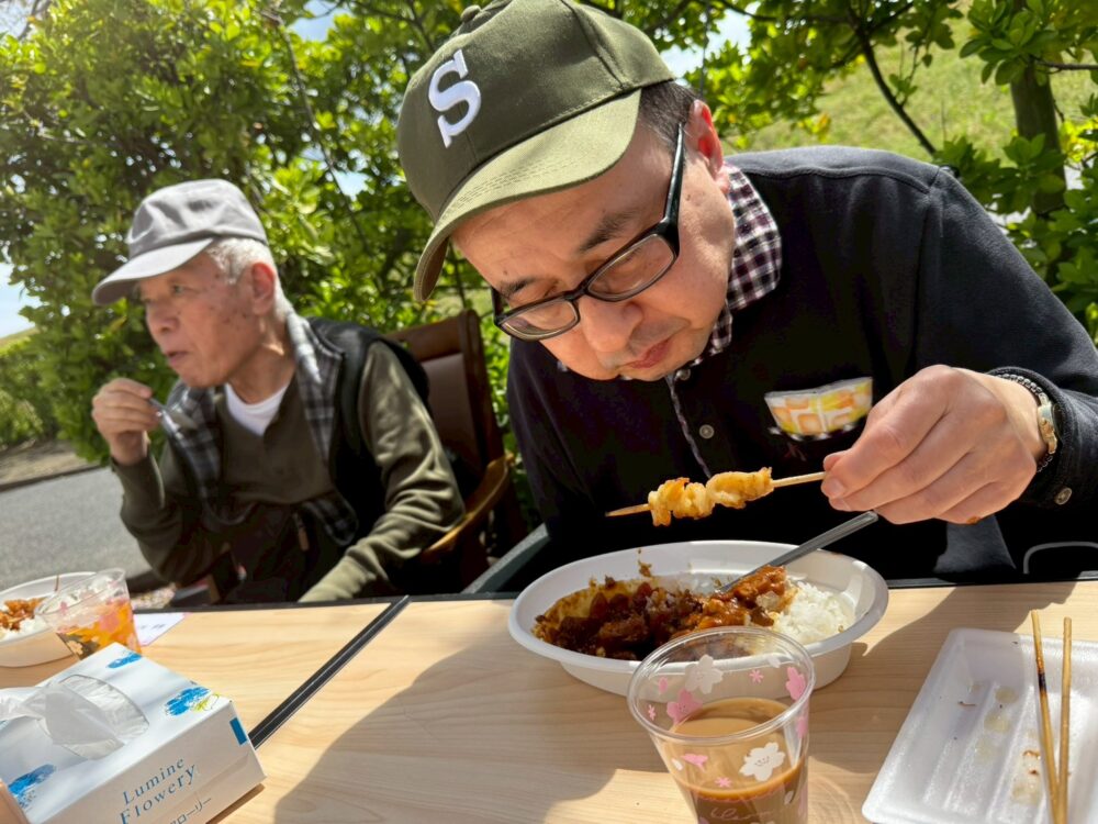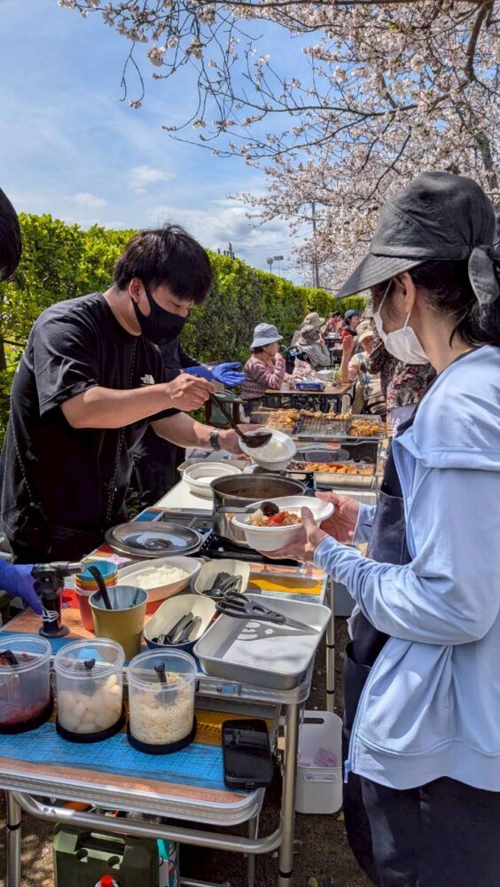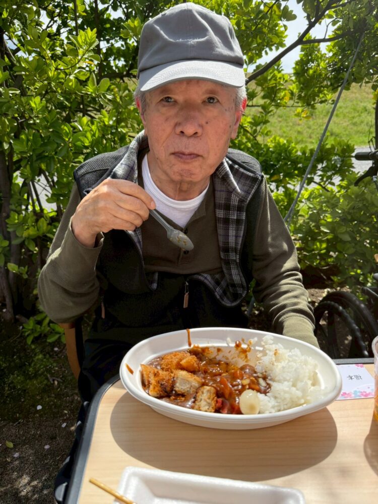 手作りカツカレー🍛と好きな飲み物を最高の桜の木の下で🤗🥰🤗🥰🤗