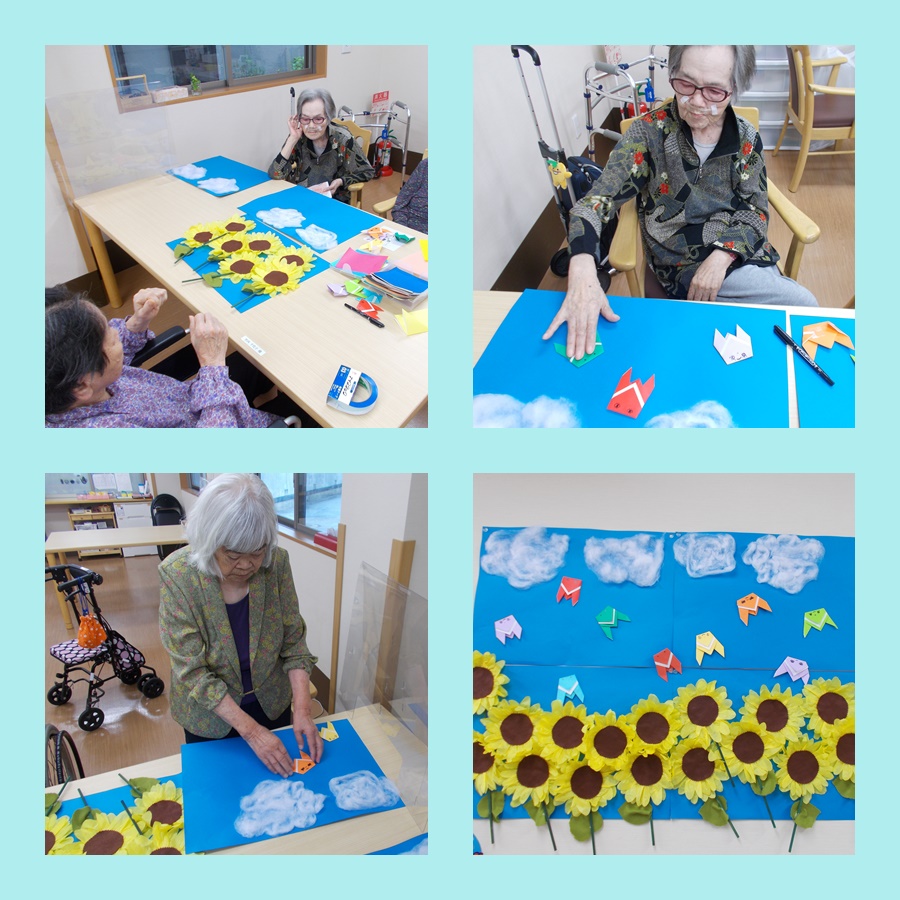 花火は折り紙で浴衣を作り、皆さまの顔写真に合わせて制作しました🎇
