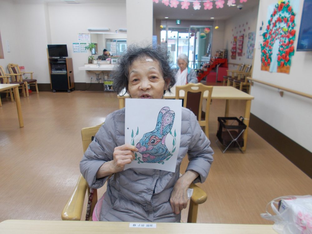 2020.03.15 ハートリンク西大寺 3月15日 本日の作品! 毎日不安なニュースが流れている今日この頃。 ちょっと変わった塗り絵を楽しんで頂きました! ステキなウサギの塗絵の完成です! 明日も楽しい1日にしましょ♪ 一覧ページに戻る