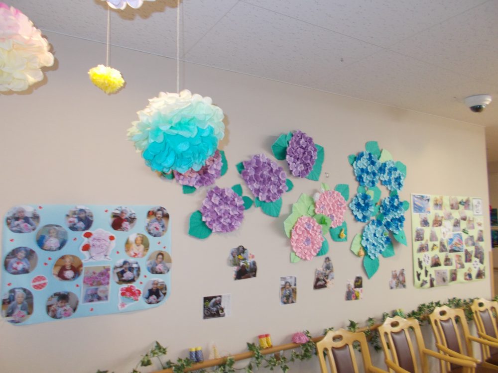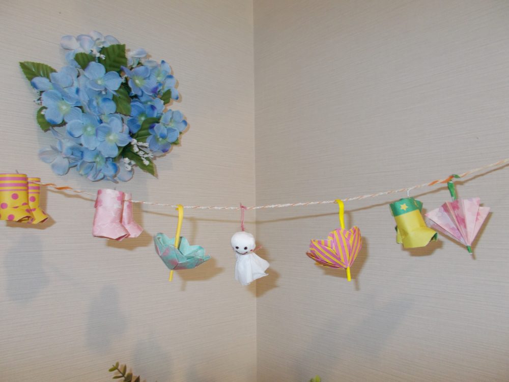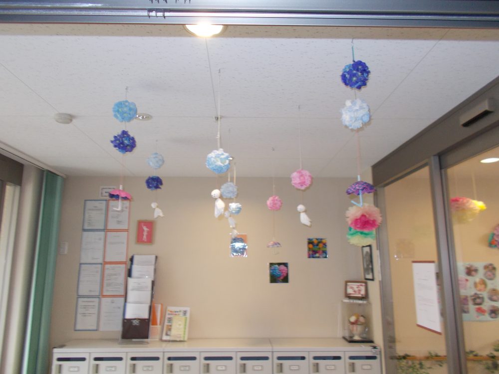 2020.06.01 ハートリンク西大寺 6月1日 衣替えの季節 ☀ 施設の中も衣替え ☂ 雨が降っても、陽気に過ごせますよう「テルテル坊主」「カサ」「雨靴」完備 ‼ 紫陽花やテルテル坊主が皆様をお迎えします 💛 一覧ページに戻る