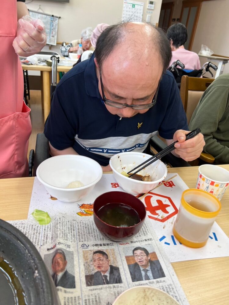 外がわりと暑かった為、皆様は中で食事🍽🍙です♪