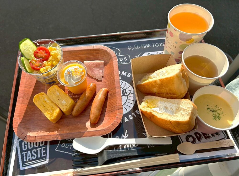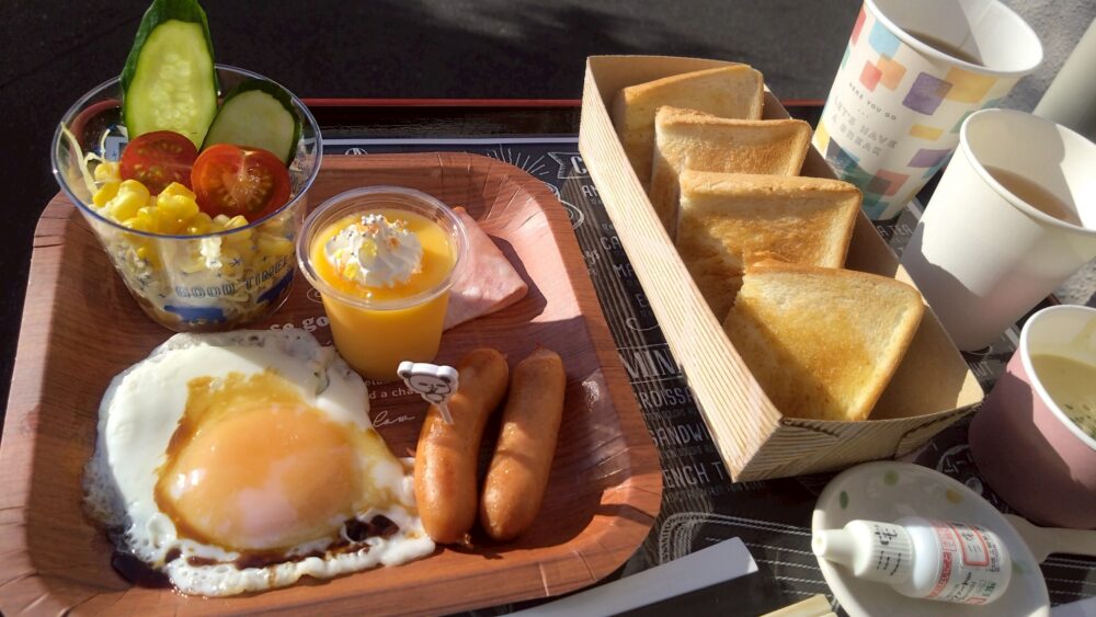 朝の澄んだ空気の中で食べる好みのモーニングは格別と大絶賛🥐☕🥪🥗🧈🍲