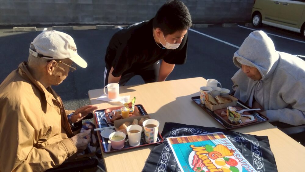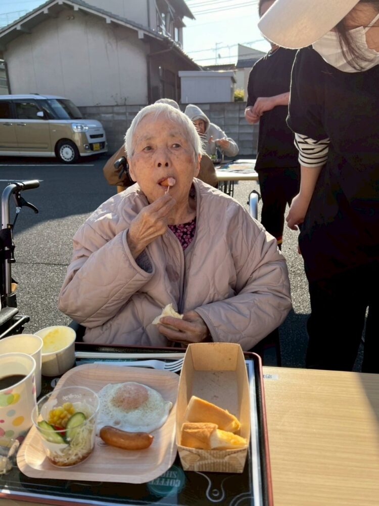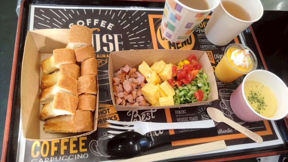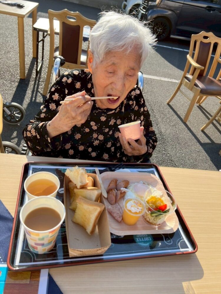 朝の澄んだ空気の中で食べる好みのモーニングは格別と大絶賛🥐☕🥪🥗🧈🍲