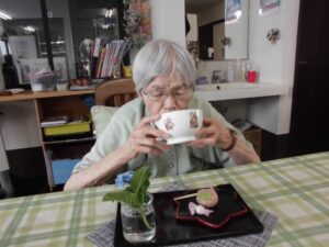 6月17日が和菓子の日ということなので皆さんで和菓子と抹茶をいただきました