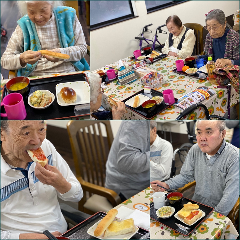 今日の朝はパンです‼そのあとはみんなで体操(〃艸〃)ムフッ