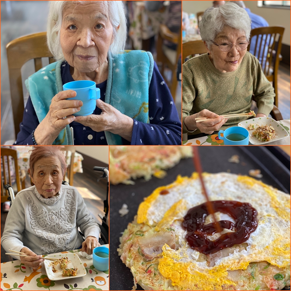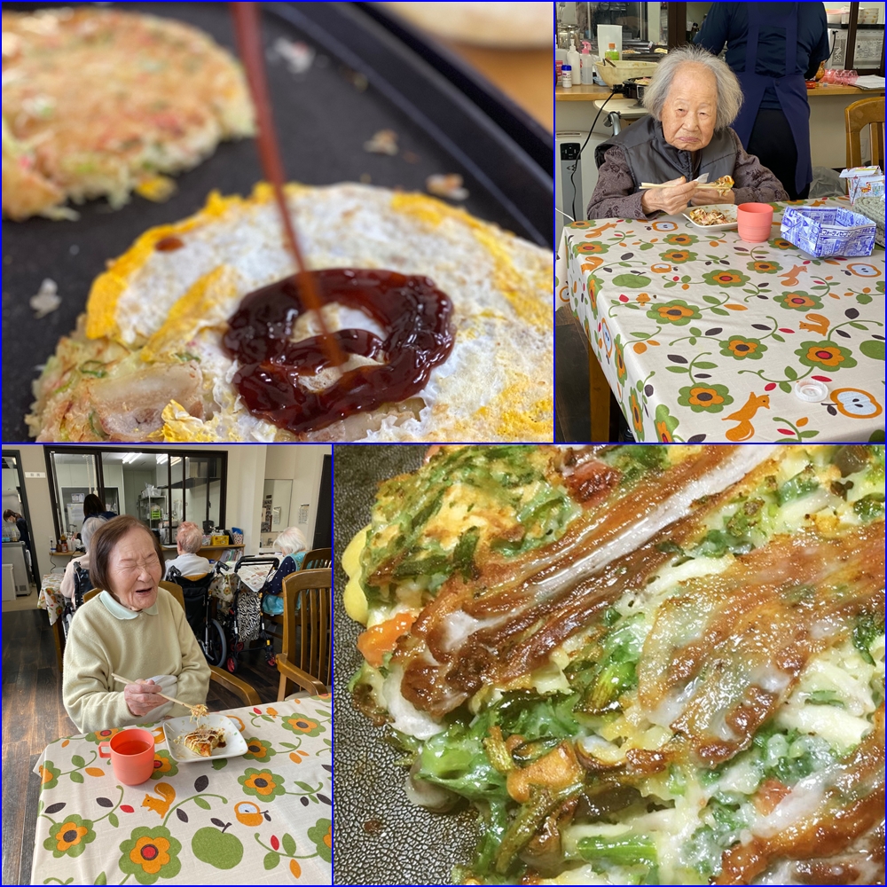 昼食がうどんで物足りない様子だったので急遽おやつをお好み焼きに変更です(* ´艸`)クスクス