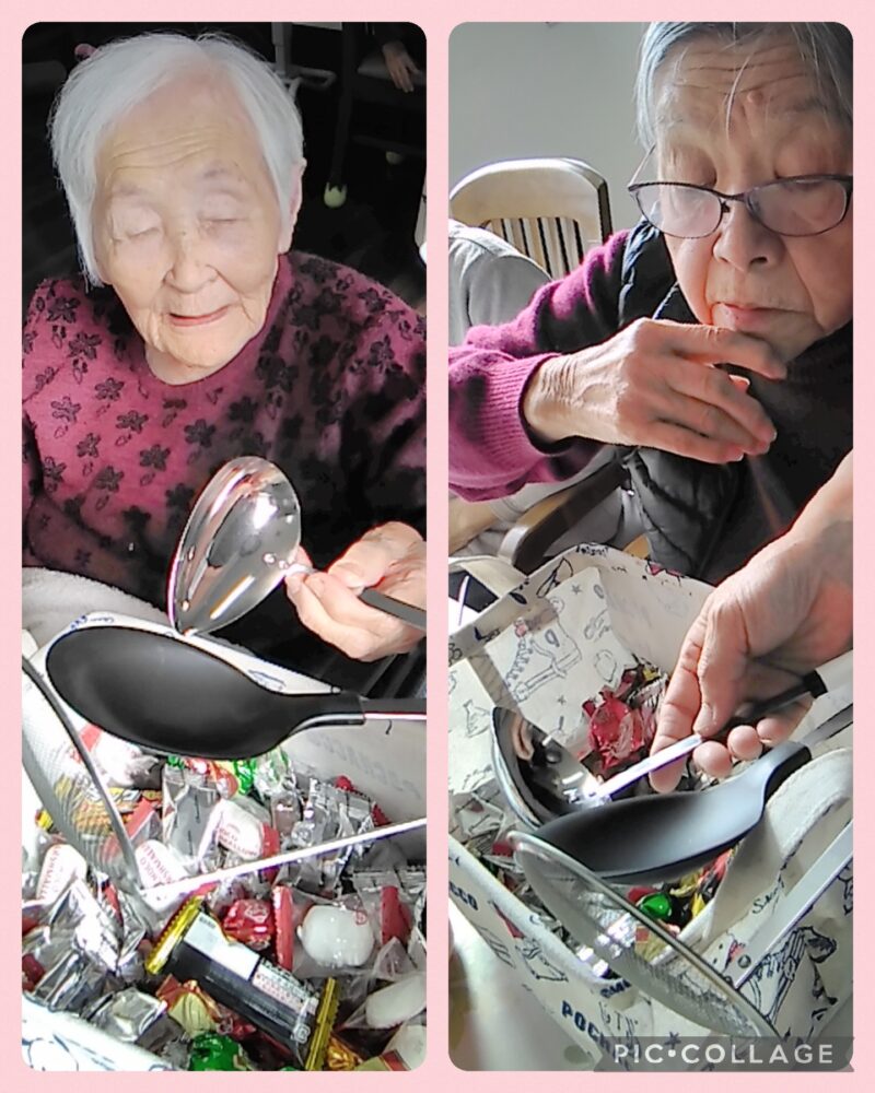 「わぁ、いっぱいとれた~」「手使ったらいけんのん?」「大きいのが入ったわぁ」