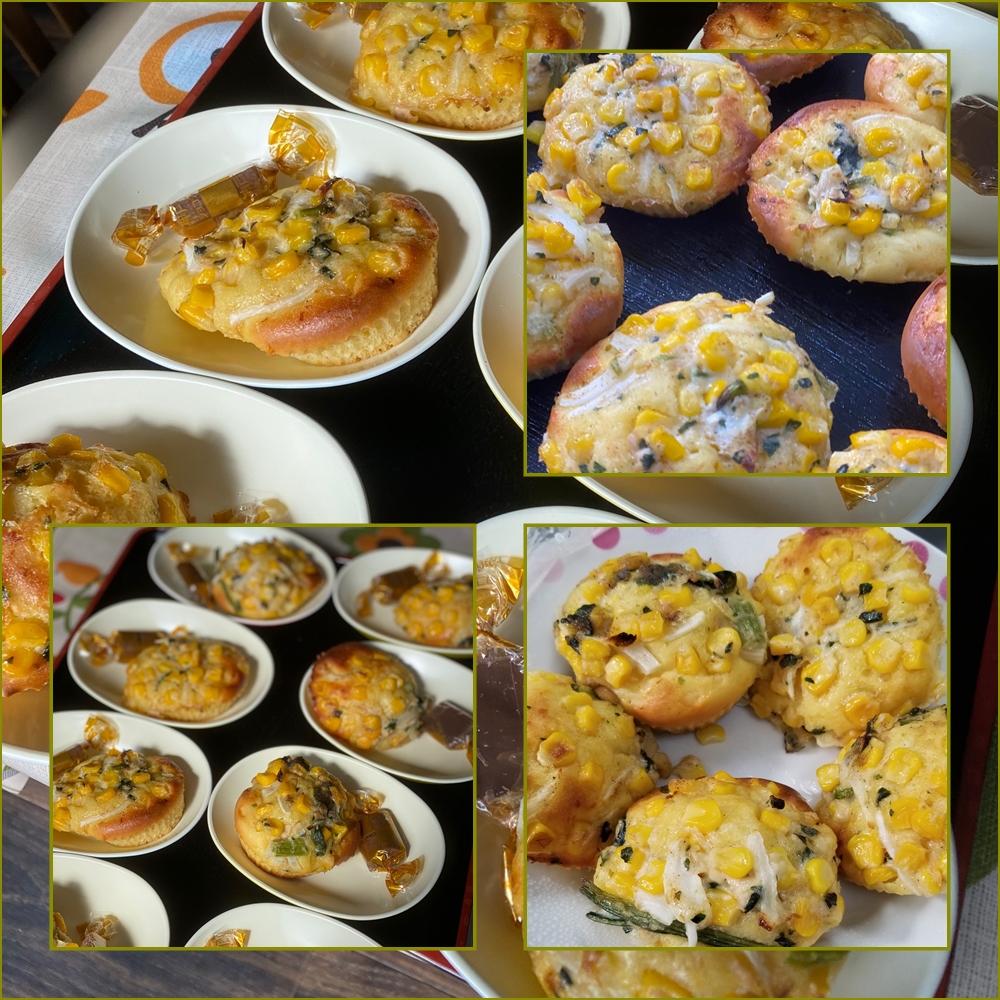 今日のおやつは手作りツナ&コーンパン(⋈◍>◡<◍)。✧♡