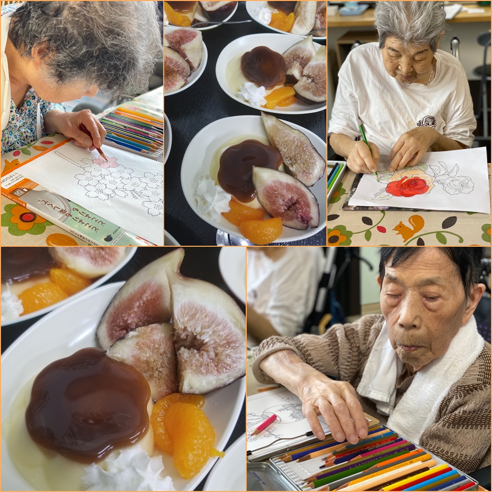 2021.08.16 ハートリンク瀬戸内 大人のぬりえハートリンク瀬戸内美術部です(〃艸〃)ムフッ おやつには頂き物の無花果(イチジク)です(* ´艸`)クスクス 因みに「無花果」の字は、花を咲かせずに実をつけるように見えることに由来する。中国で名付けられた漢語で日本語ではこれに「イチジク」という熟字訓を与えている。中国で「映日果」は、無花果に対する別名とされたそうです。 一覧ページに戻る