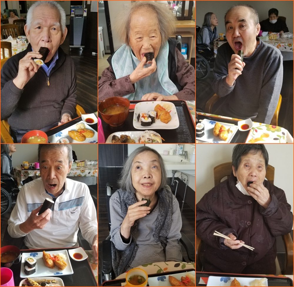 - 1973年頃 …… 大阪海苔問屋協同組合が「節分の夜、恵方に向かって無言で家族揃って巻き寿司を丸かぶりすると必ず幸福が回ってくる…と昔から言い伝えられています」と書いたチラシを、寿司屋に海苔を納める時に配った。当時は大阪のデパートでも「2月3日 幸運巻き寿司売り出し」と宣伝販売されていたらしい。