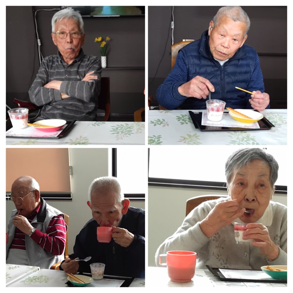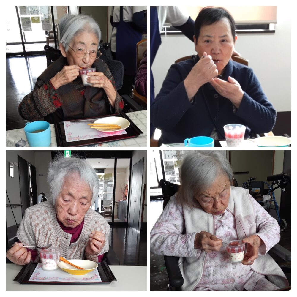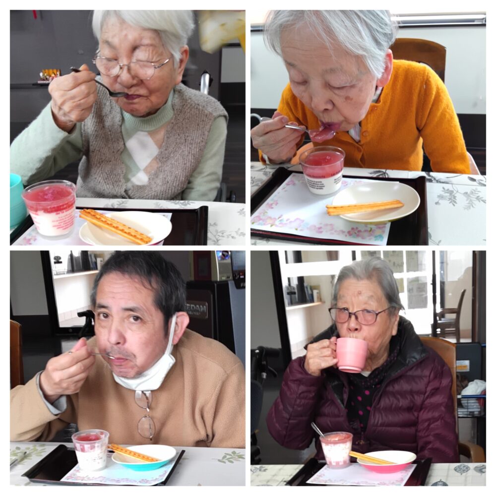 職員手作りパンナコッタのいちごジャムのせを