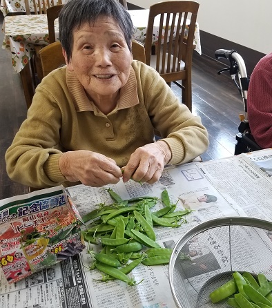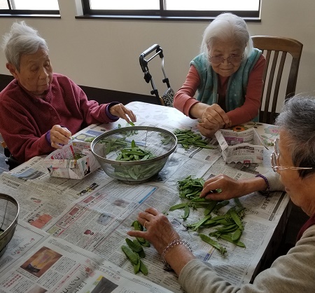この時期になると皆さんにエンドウの筋を取ってもらうのを手伝ってもらいます。
