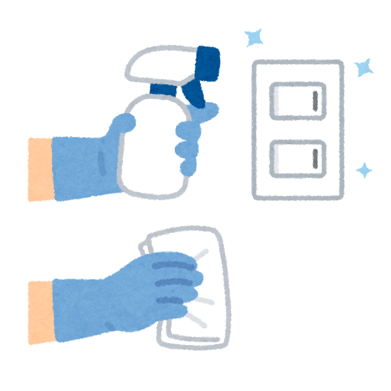 また、午前・午後に机、椅子、手すりなどの消毒、
