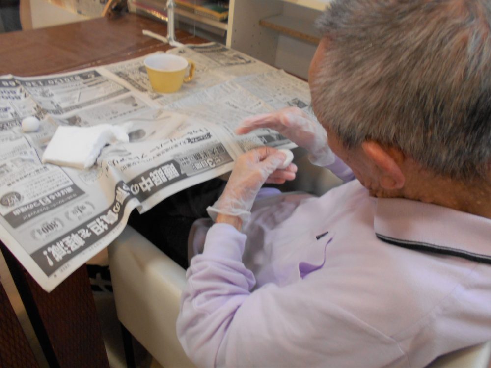 今日は紙粘土をつかってある物を