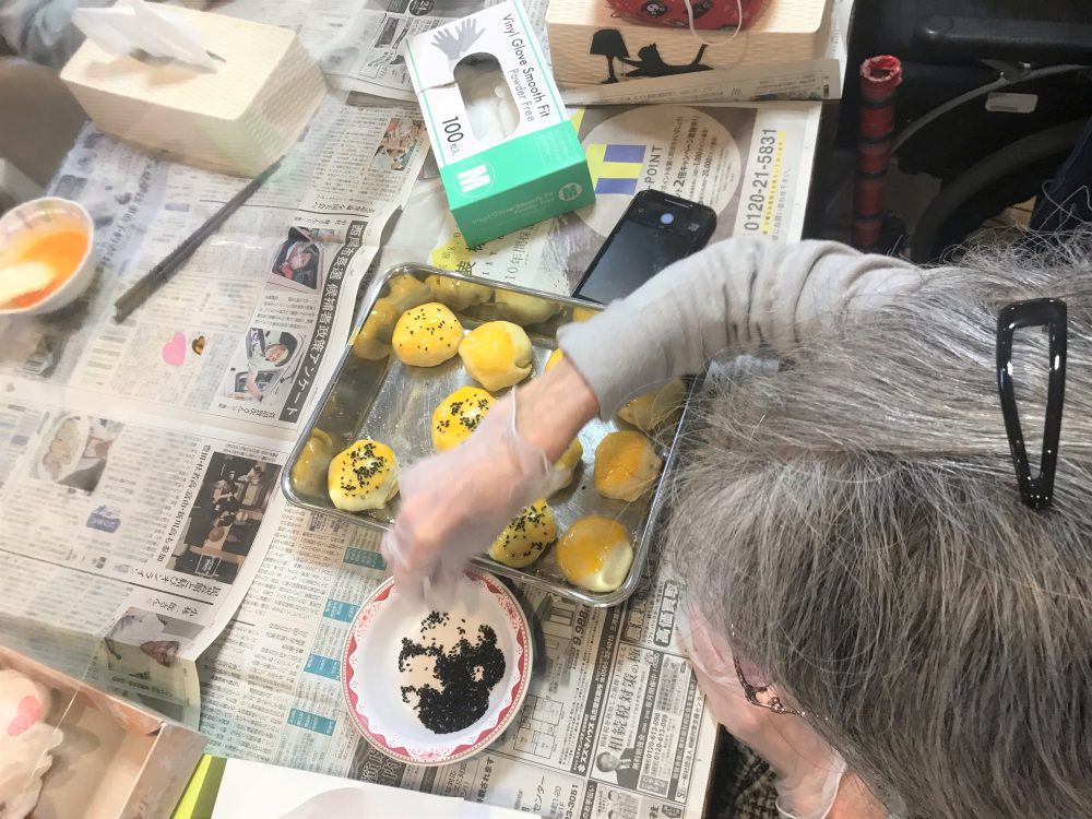 卵黄塗って、ごまをふりかけさあ焼きましょう!!!