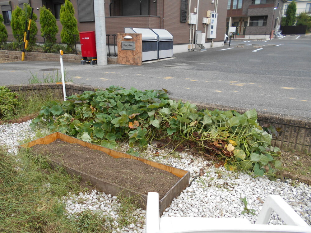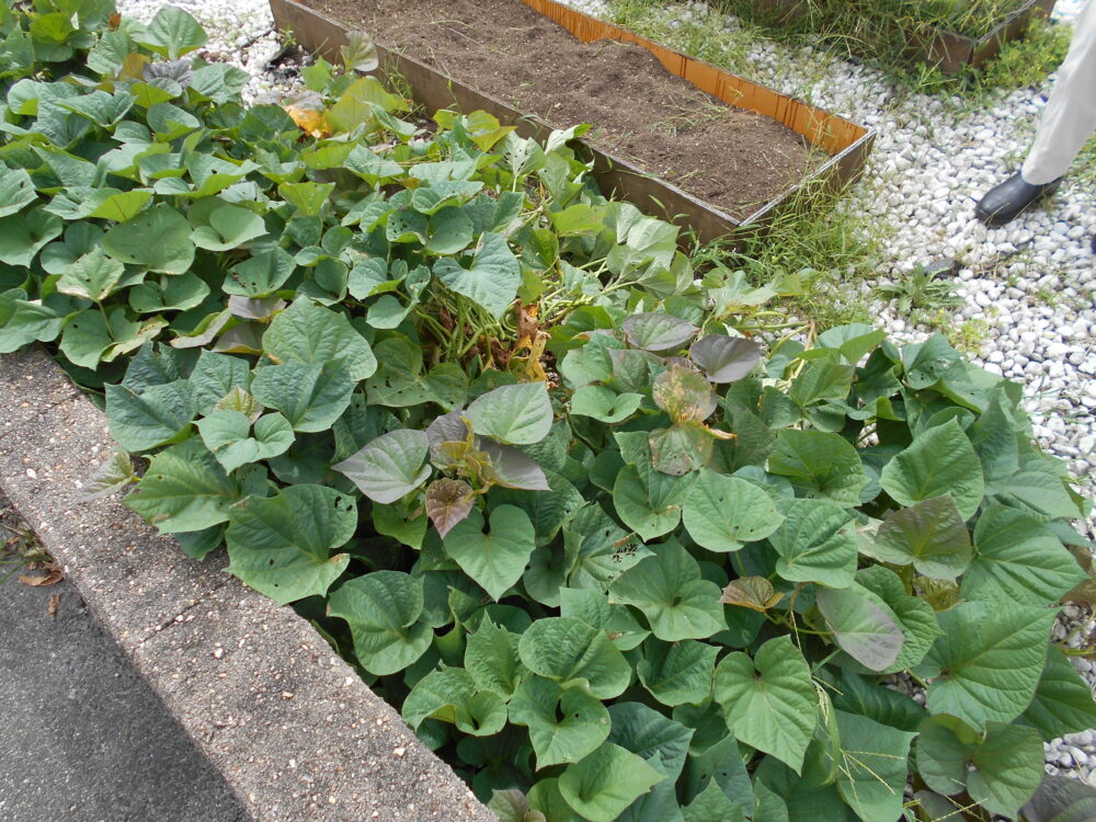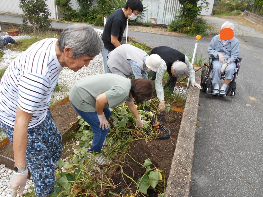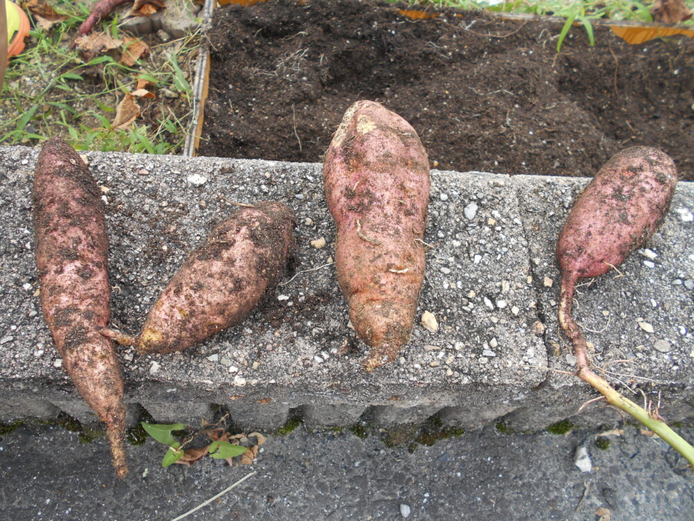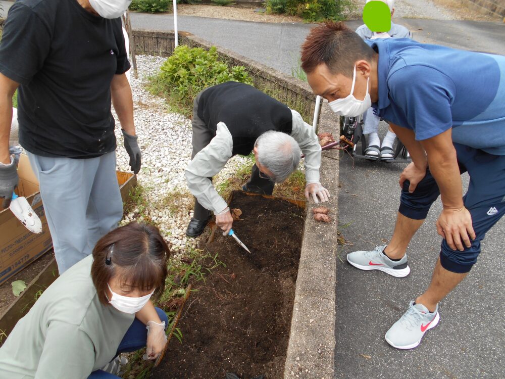 今日は、お庭で育てたサツマイモ掘りを