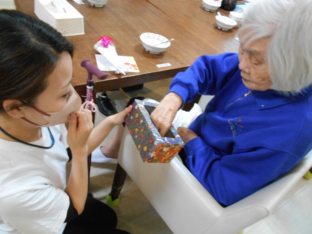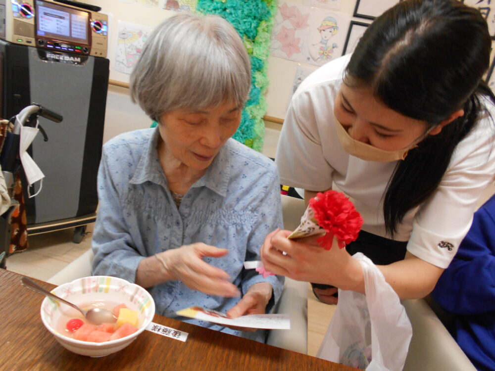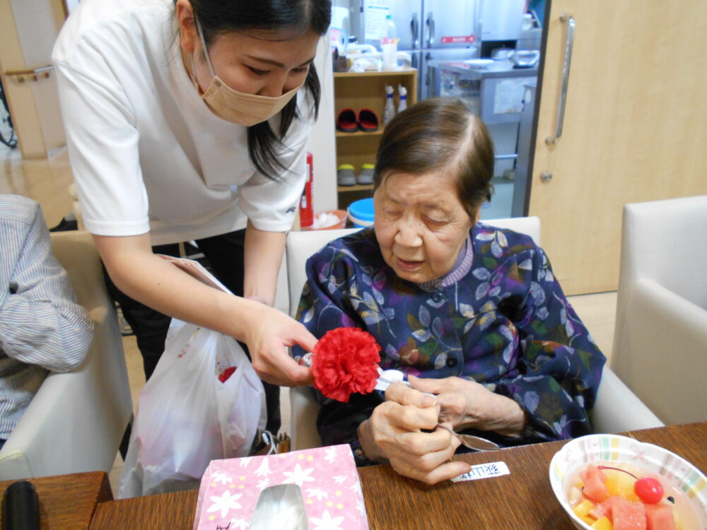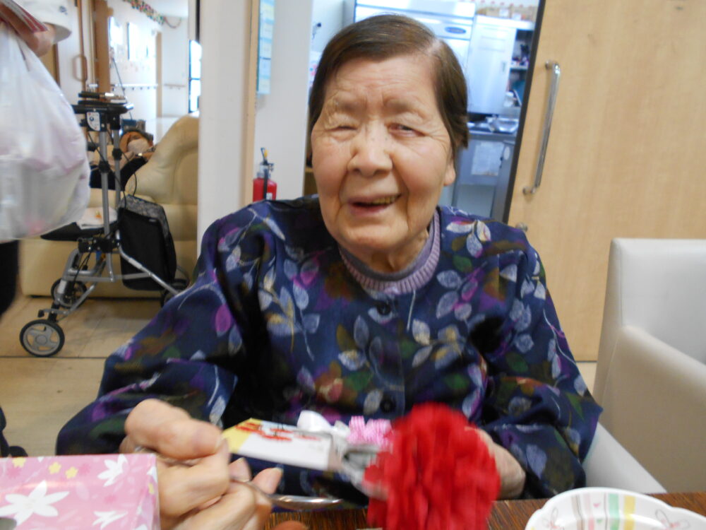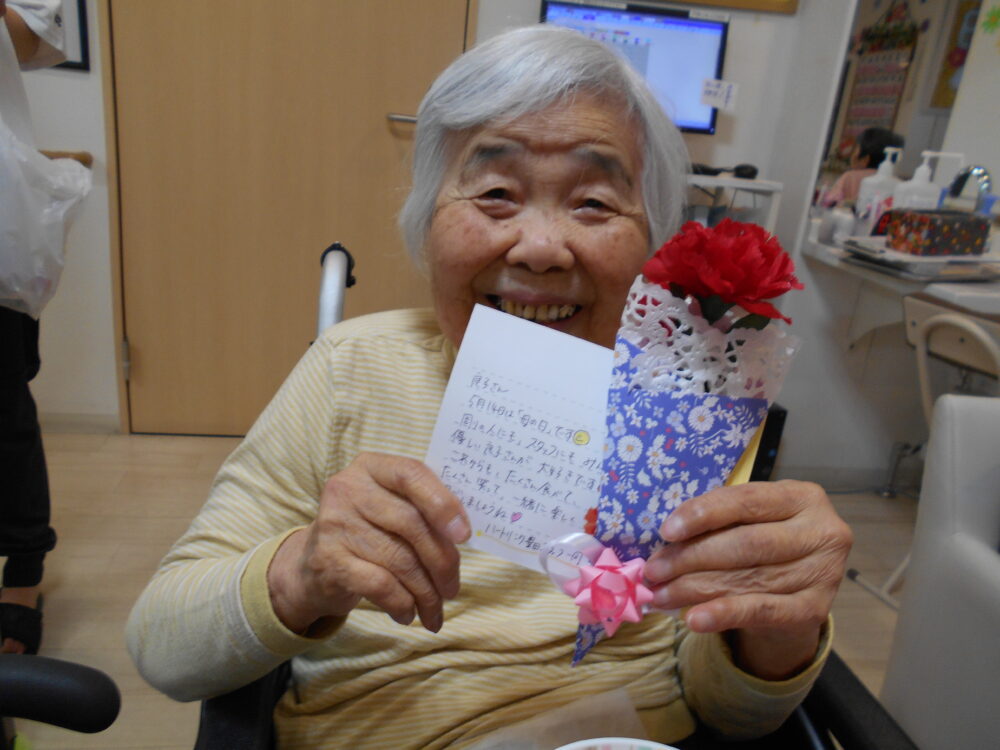 スタッフから、母の日のお祝いに