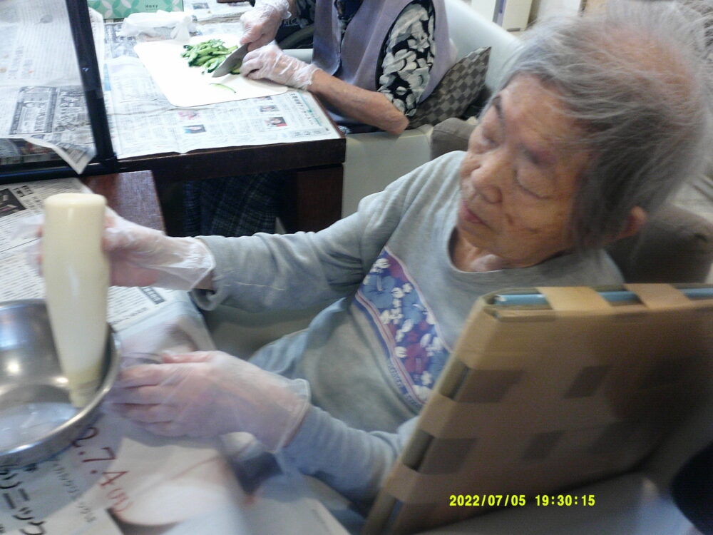一緒に今日の朝お庭で採れたきゅうりも使い、
