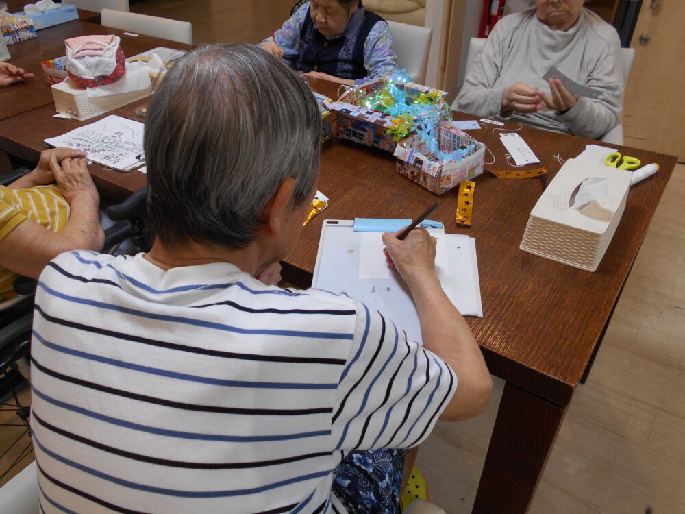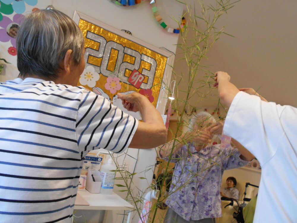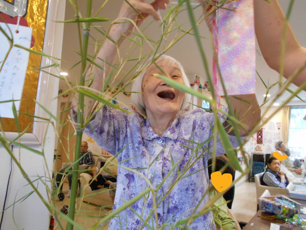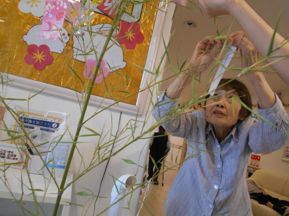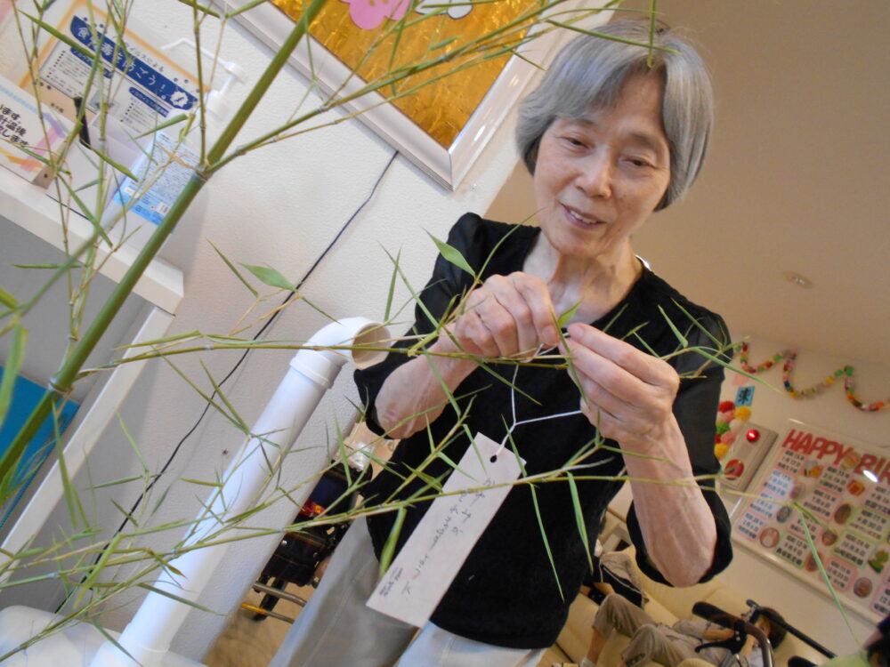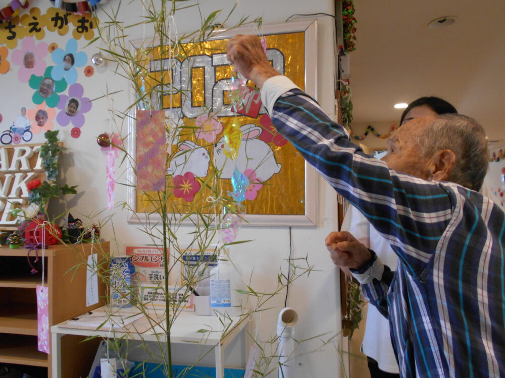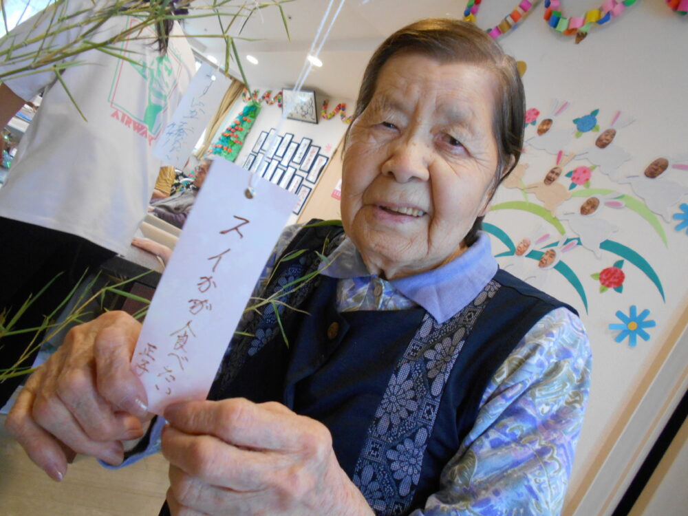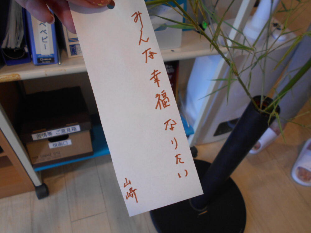 笹の葉に飾り付けと短冊を書いて頂きました🎵