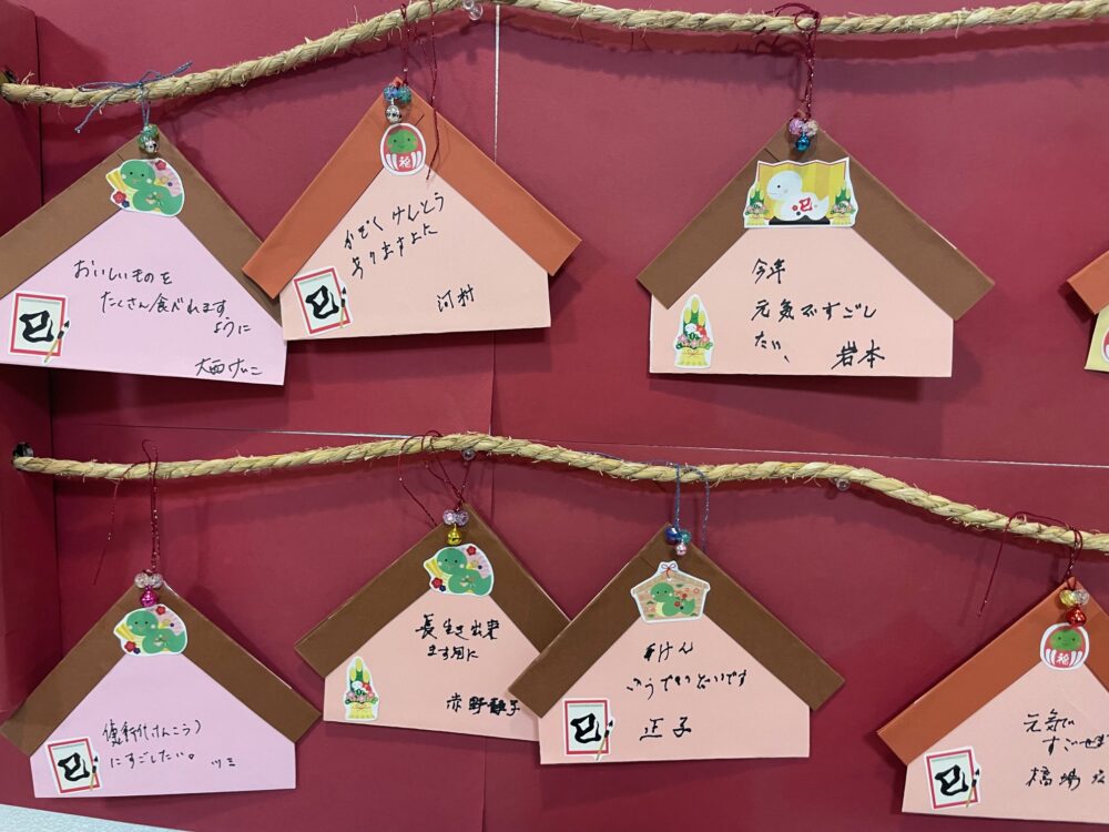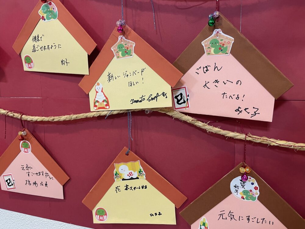 施設の中に戻り、絵馬にお願い事を