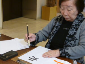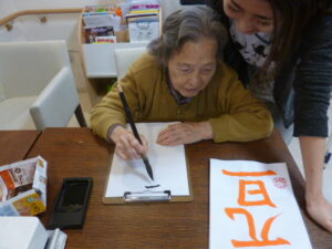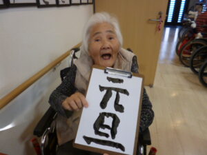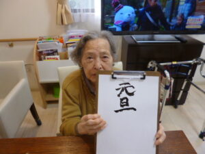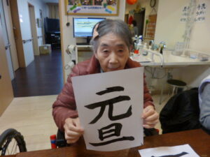 新年を迎え、利用者様とスタッフで書初めを行いました(*‘∀‘)