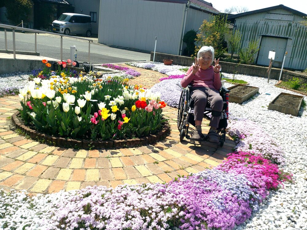 2022.04.09 ハートリンク豊田 ~日向ぼっこ🌞~ 今日もとても暖かく、 お庭で日向ぼっこしました💛 チューリップが満開で、 「可愛い~😍」と喜んで下さいました🎵 芝桜も満開です🌸💛 一覧ページに戻る