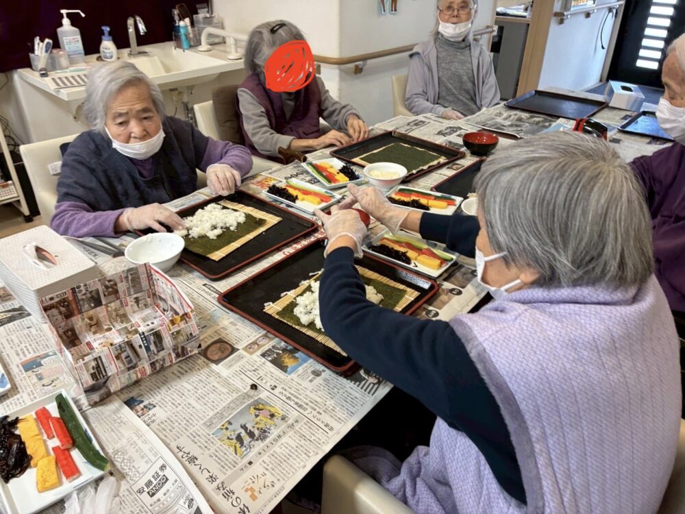 お昼ご飯に恵方巻をみなさんと作りました🎵
