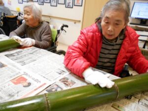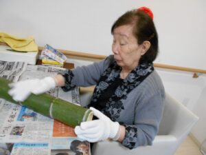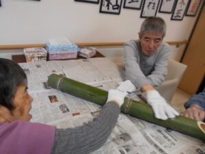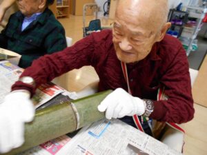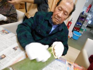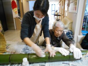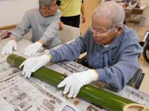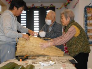 縄の結い方もとても難しく、利用者様に教えて頂きながら