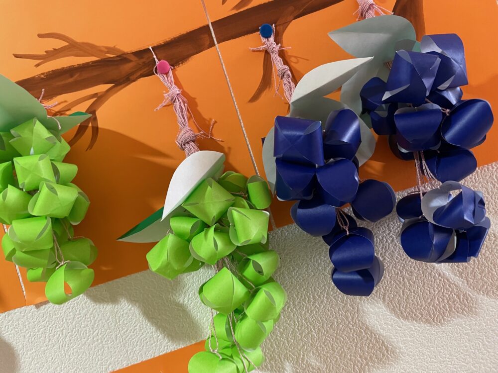 2025.12.11 ハートリンク豊田 ~2階の壁画も完成です🍇~ 2階の壁画も完成しました🎵 みなさんにぶどうを一粒一粒作っていただき、 紐でまとめて立体的なぶどうの完成💛 通るたびに、 「おいしそうだね」とニコニコです💛 一覧ページに戻る