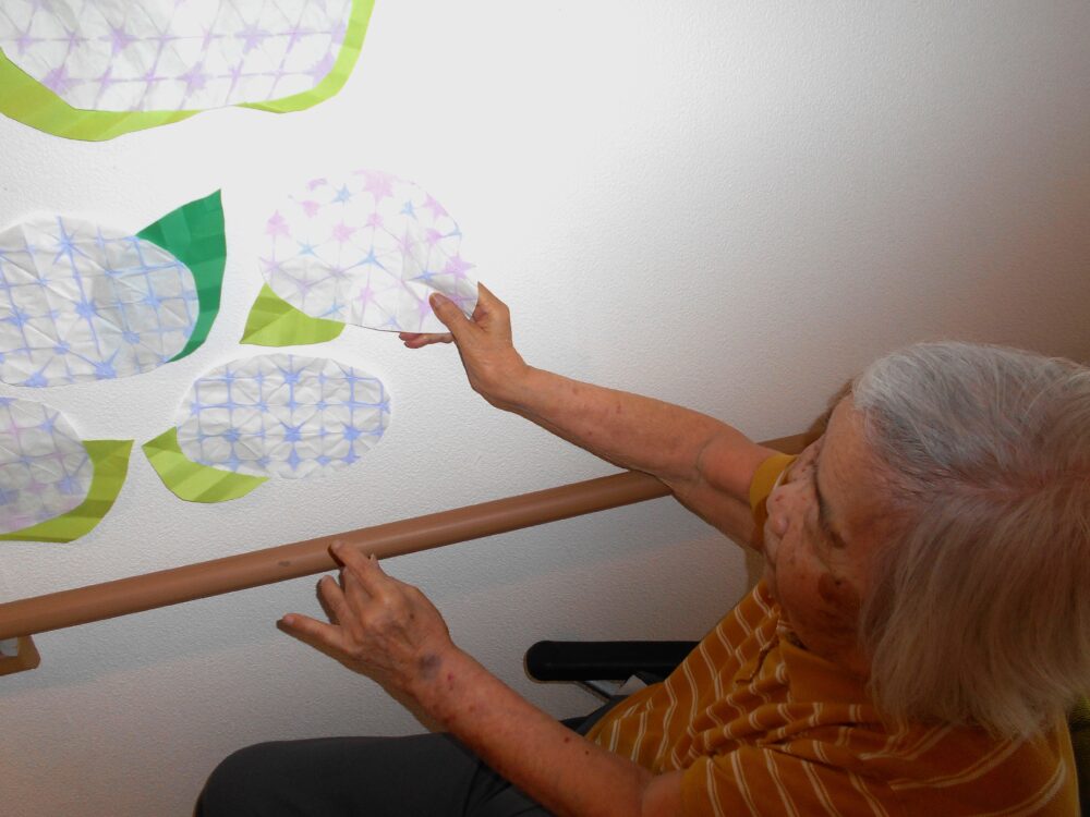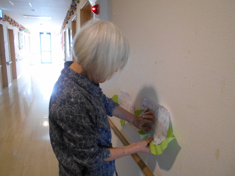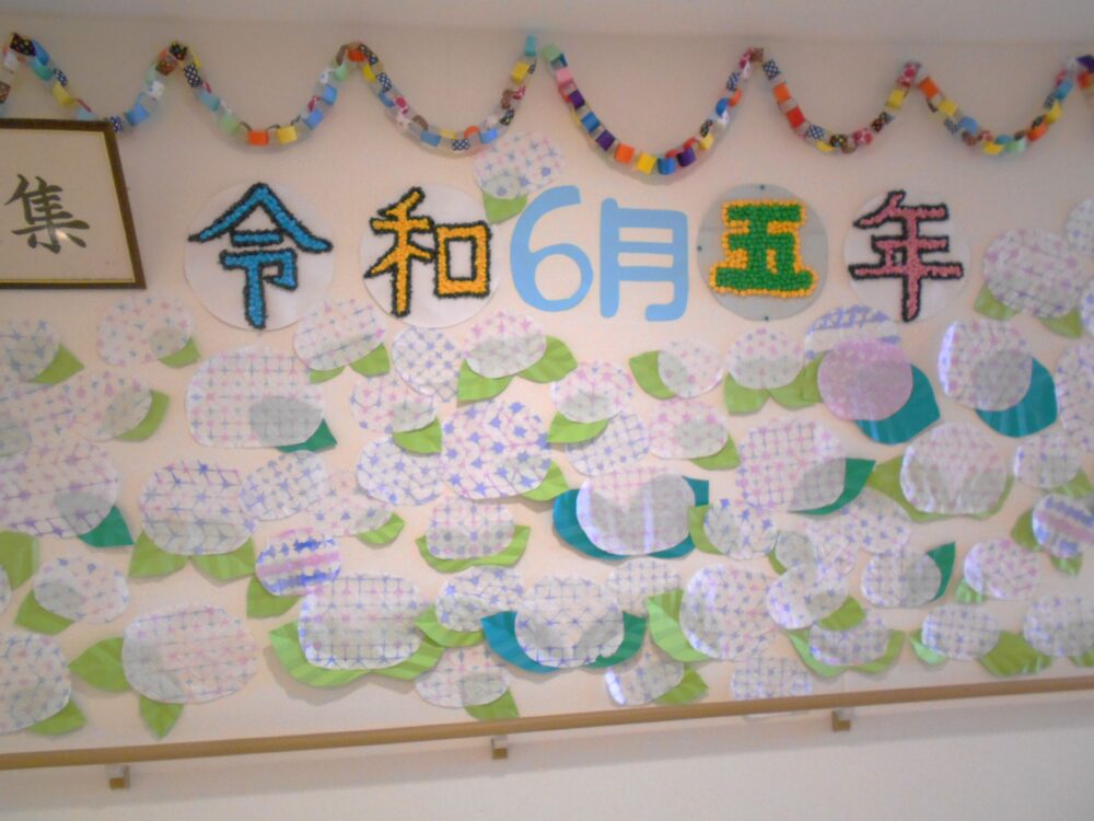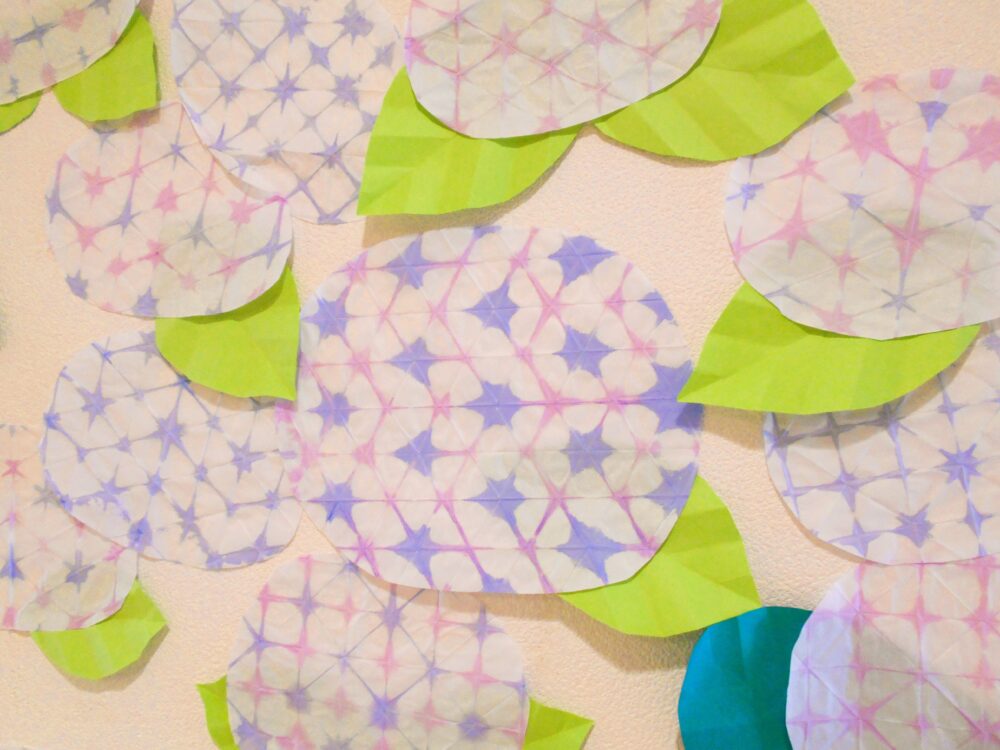2023.06.27 ハートリンク豊田 ~2階の壁紙完成✨~ 今月は雨の日も多いですが、 雨の日でも綺麗に咲く紫陽花を 今回は半紙を使って折り染めをし 色んな柄の紫陽花を壁紙で作りました🎵 壁一面綺麗な紫陽花が咲きました💛 一覧ページに戻る