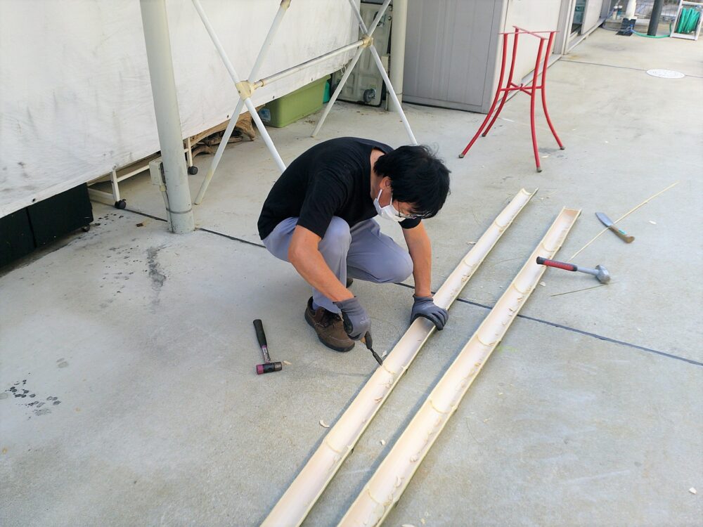 午前中から竹を切り、セットも職員さん方が頑張って下さいました!!