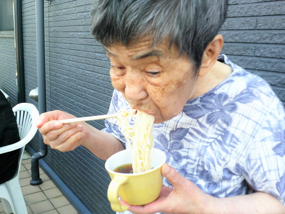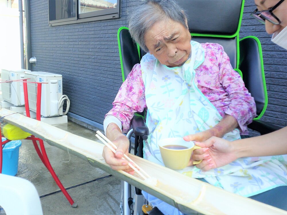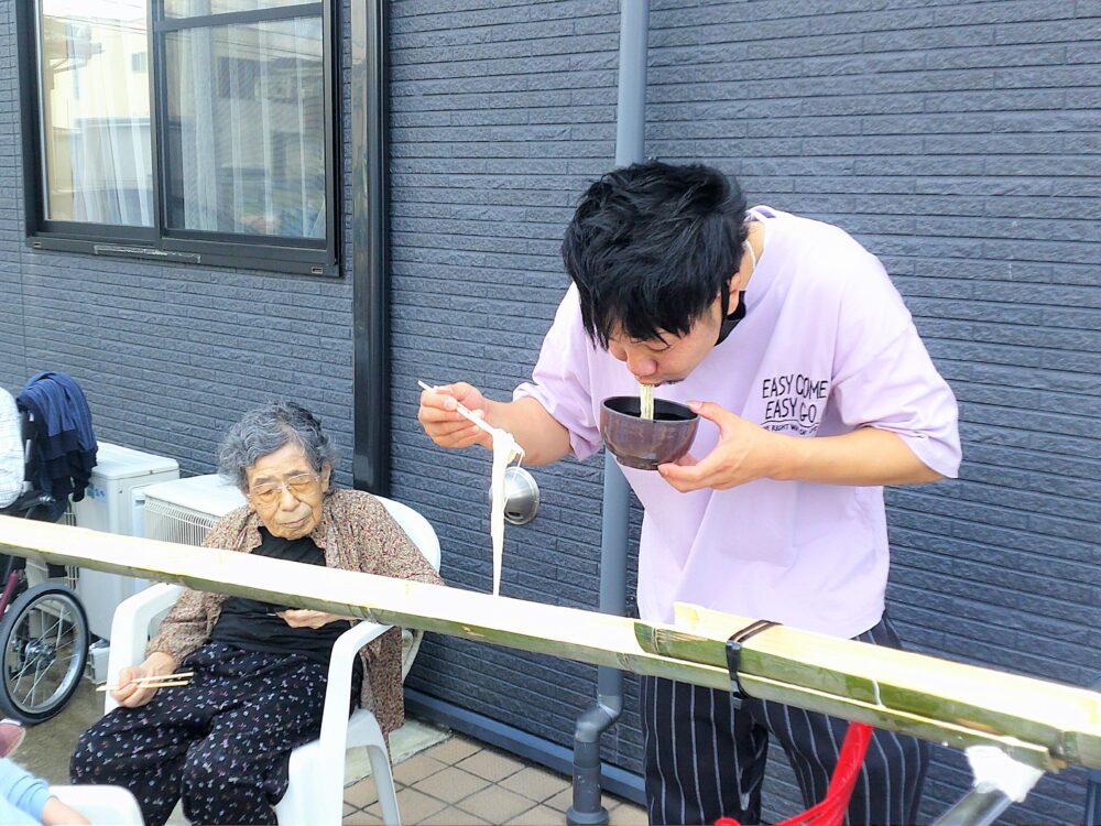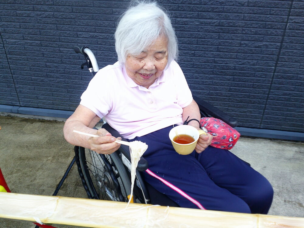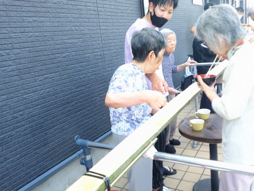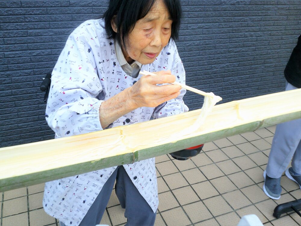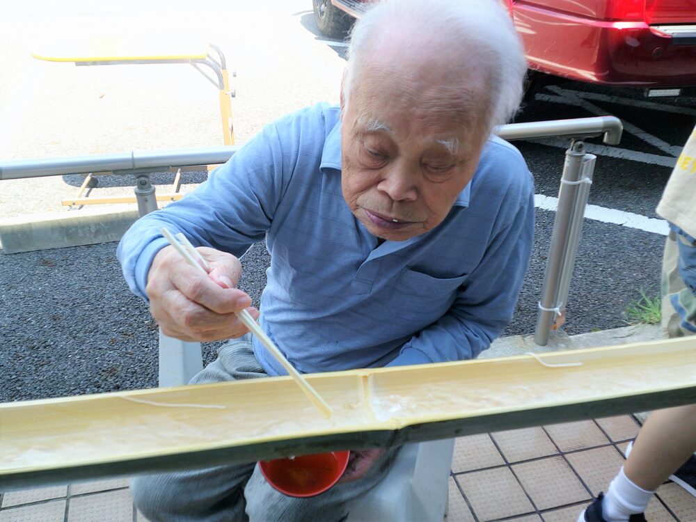 どんどん流れてくるそうめんを、皆さん楽しそうに