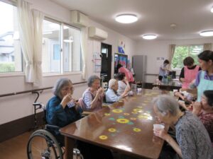 こんな時は身体から暑さを吹き飛ばせぇ~っと、『かき氷』をしました。