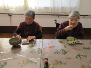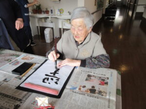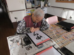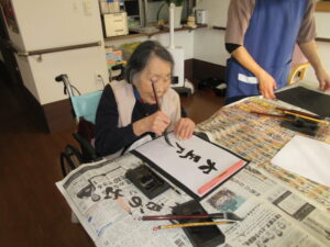 2024.01.14 ハートリンク津山口 🍵書初め・お茶会🍵 久しぶりの筆の感触を楽しまれていましたよ(*^_^*) 書道の後は、お抹茶を頂きました。 皆さん良いお顔されていますね(≧▽≦) 一覧ページに戻る