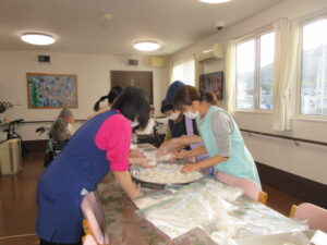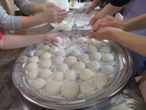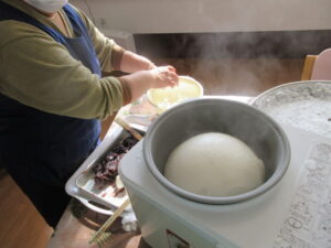 お餅を丸めていましたよ!