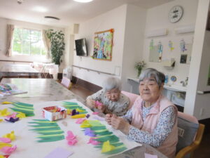 昔話に花が咲き、楽しく壁画作りが出来ました