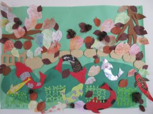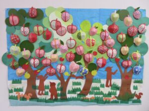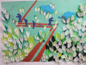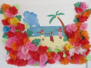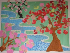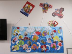 一年を通し、皆さんが集うフロアーに、皆で壁紙を作成してきました。