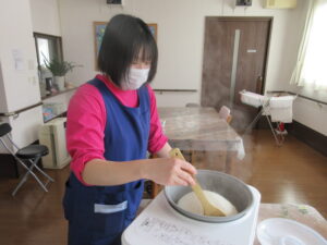 職員さんも子供の時以来の餅つきに、興味深々👀