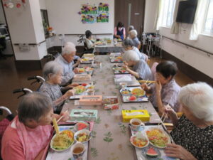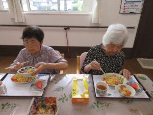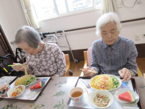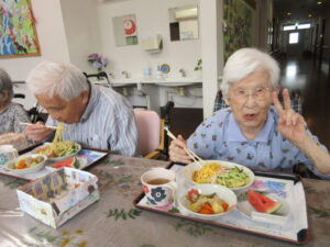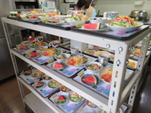 メニュー:冷やし中華、肉じゃが、スイカ🍉
