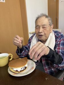 ほぼお顔の大きさのどら焼きをペロリと召し上がりました。