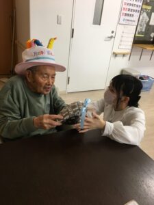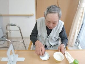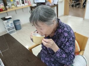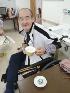 甘酒としょうがが大好きな利用者様。しょうが甘酒をお作りしました。プレゼントはゴムが緩めの靴下と、いつもタオル必須ということで、タオルをプレゼントしました(*^^*)