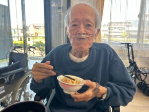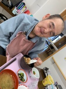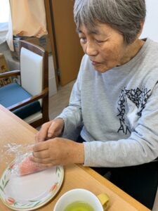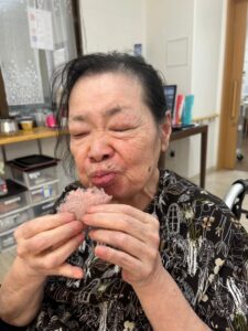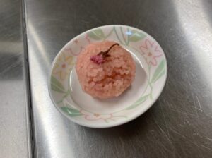 利用者様に桜餅用のごはんに桜色になる魔法の粒粒を