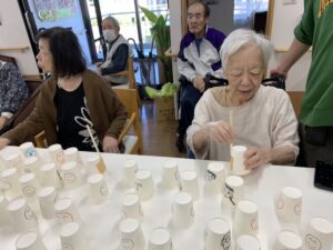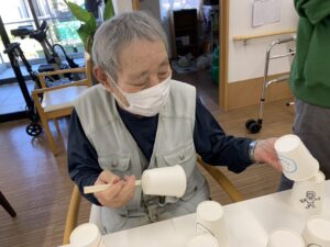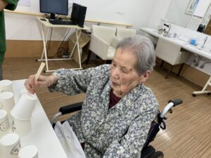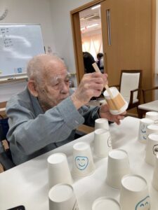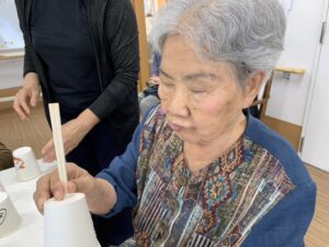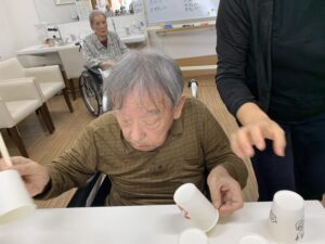 紙コップハンマーをかぶせた数を競いました(^^♪