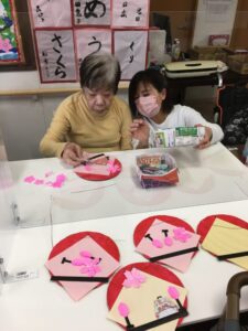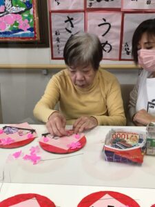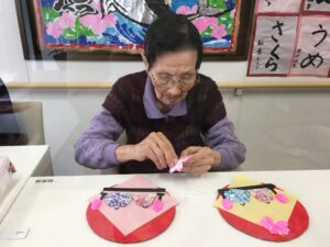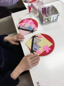 お内裏様、桜、ぼんぼりと台紙を用意し、お好きな位置に貼って頂きました(^^♪