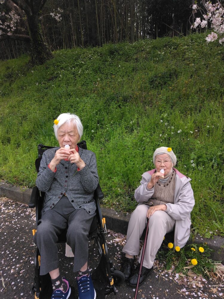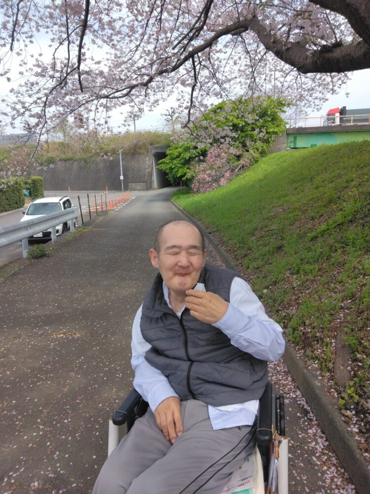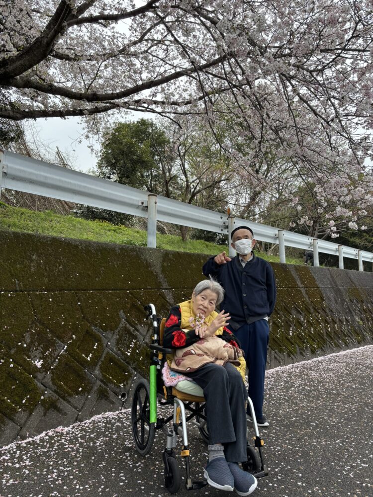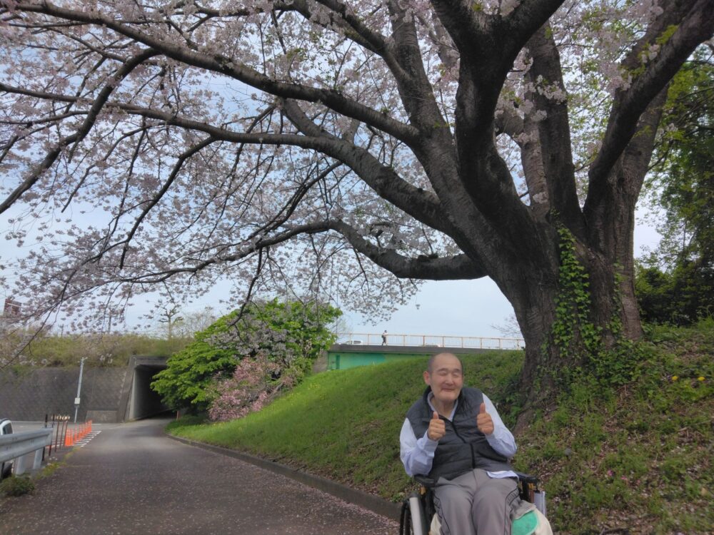 施設の近くに河川敷があり、川沿いに桜並木があるので