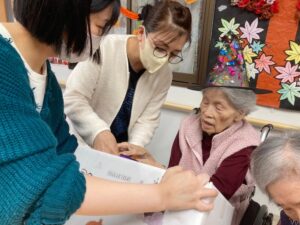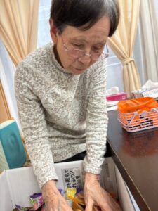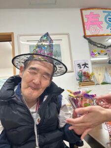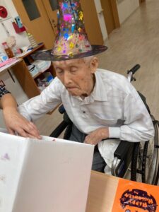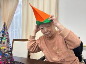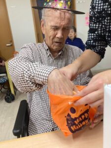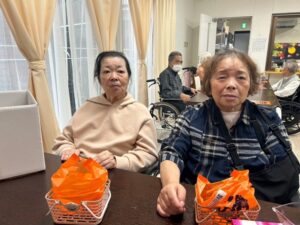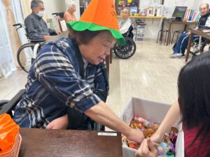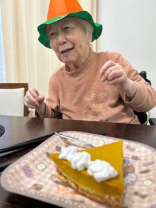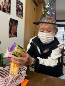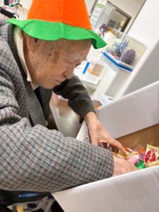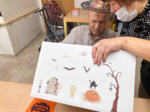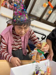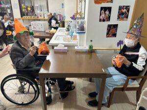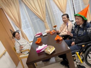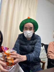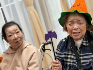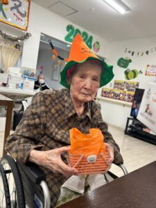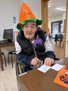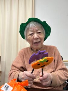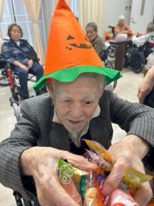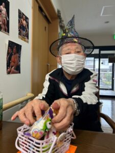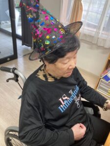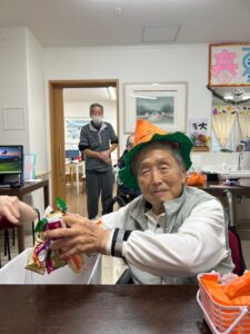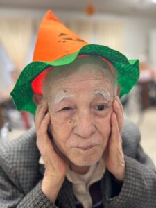 仮装用の被り物や杖などを利用者様に着ていただいて