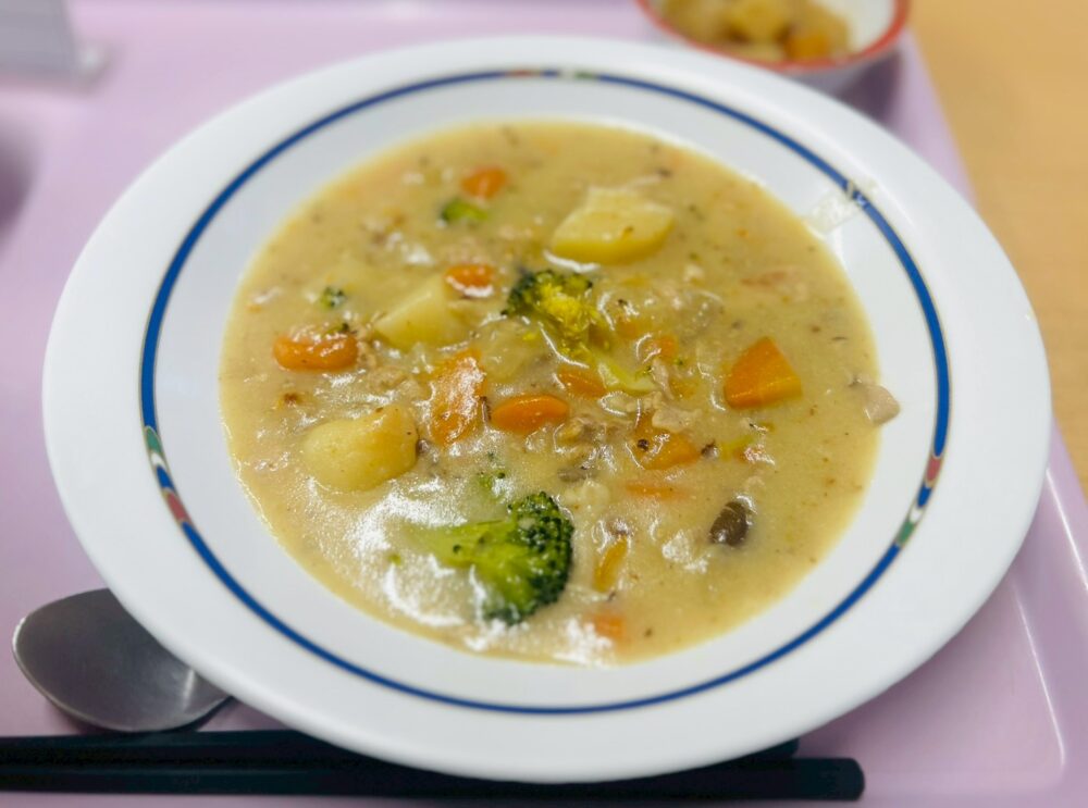 添加物なしのルーを配合し米粉シチューにしました(*^-^*)