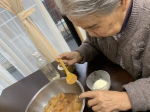 リンゴのコンポートをバニラアイスにのせました(*^-^*)